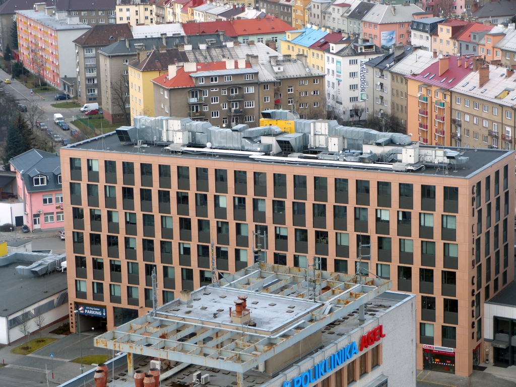 Ještě pár pohledů a jedním z velmi tichých výtahů Schindler se spustím dolů.