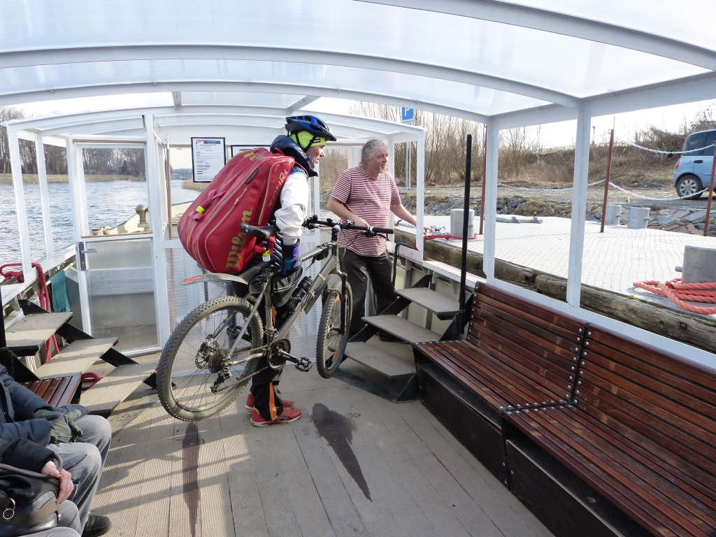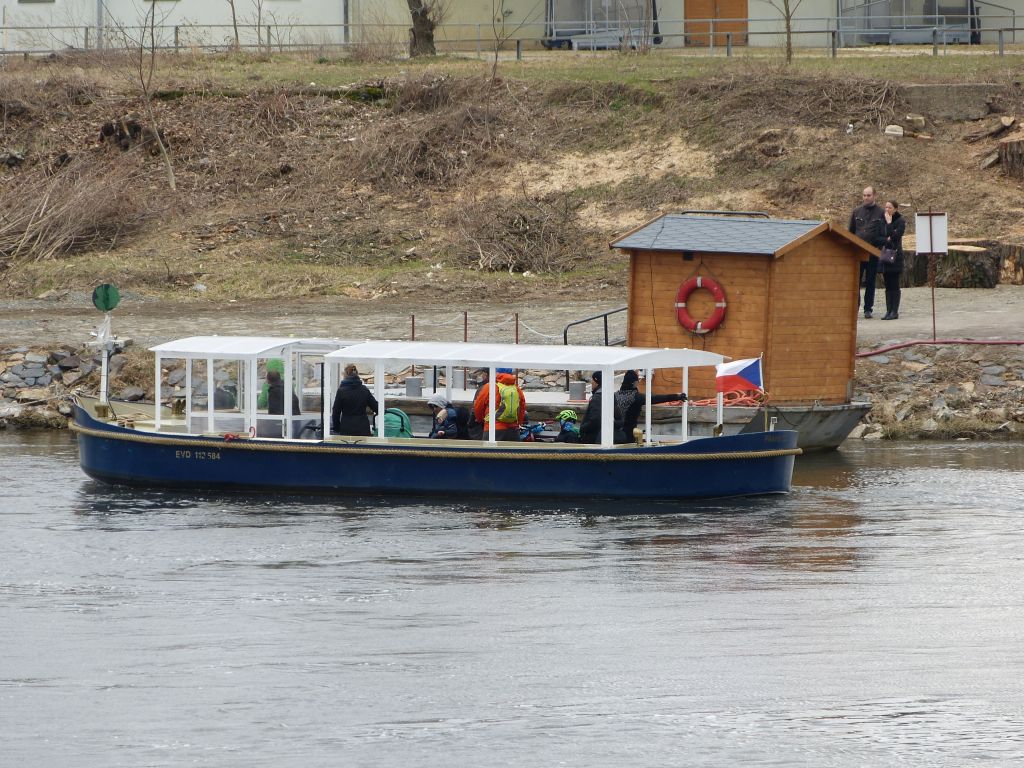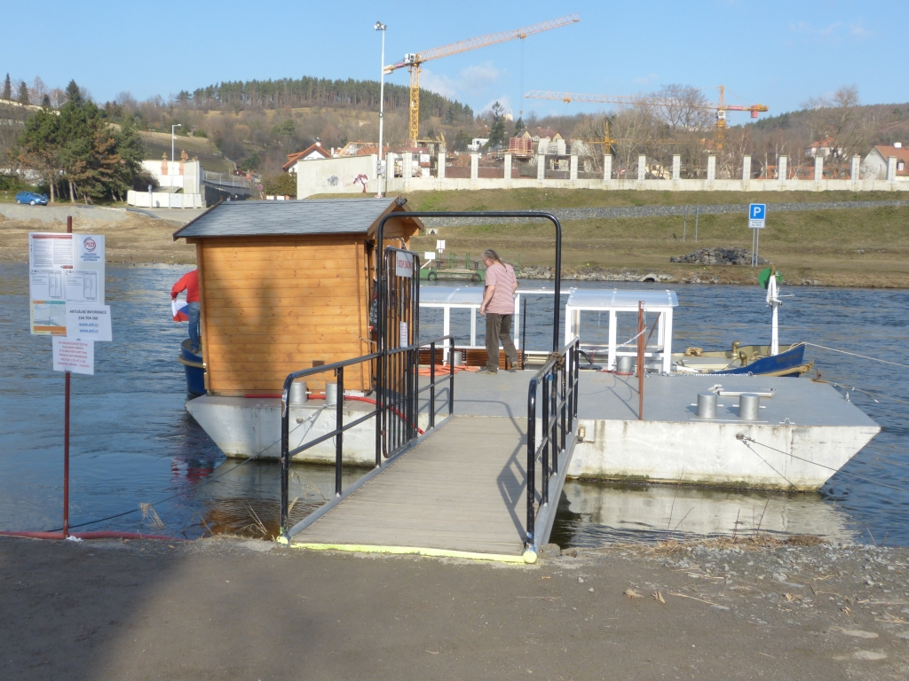 I takto vypadá pražská MHD. Přívoz v Tróji v místě spadené lávky. Přívoz je zdarma.