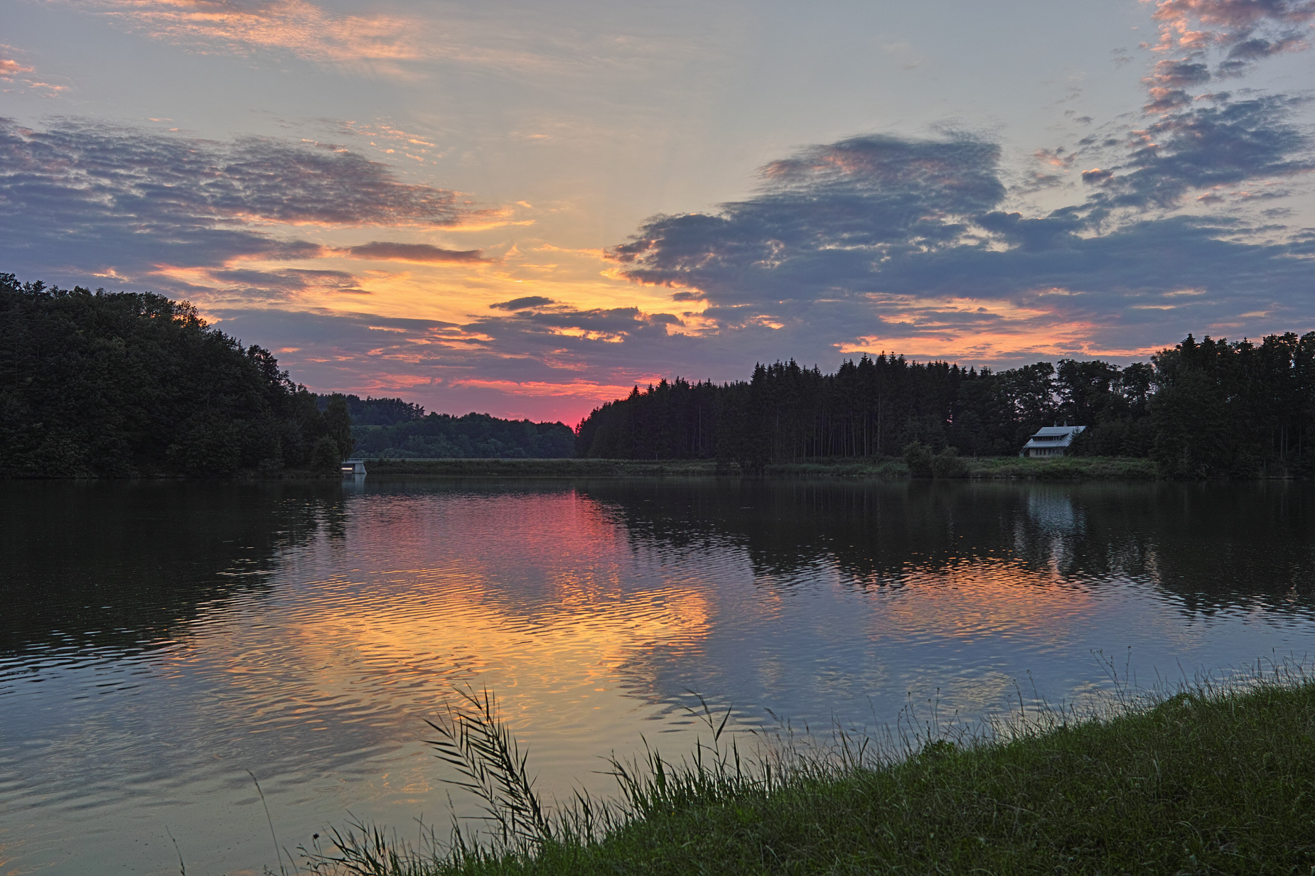 Jarous to mel nechat jak to ten fotak cvaknul a ne davat duraz na "blbosti" a zabyvat se prkotinami, ktere kazdou fotku zabiji, vcetne dynamiky atd. Kdyby byla fotka kontrastni jak to fotak cvaknul i s velmi tmavymi "lesy atd", byla by fotka jedna basen….. i kdyby tu travu uriz z fotky pryc by to bylo take lepsi a fotce prospesne …. Take bych ten barak co tak blbe do toho lesa sviti , vcetne stavidla na leve strane uprostred, bych zaretusoval, protoze tam jednoznacne rusi….Nebo, kdyz by to tam Jarous chtel moci mermo mit, tak bych oboji o hodne ztmavil, aby to nebylo tak napadne a netahalo oci od toho hlavniho; totiz toho zapadu slunce, oblohy a zrcadla. Vsechno ostatni je totalne podruzne a nedulezite....;)