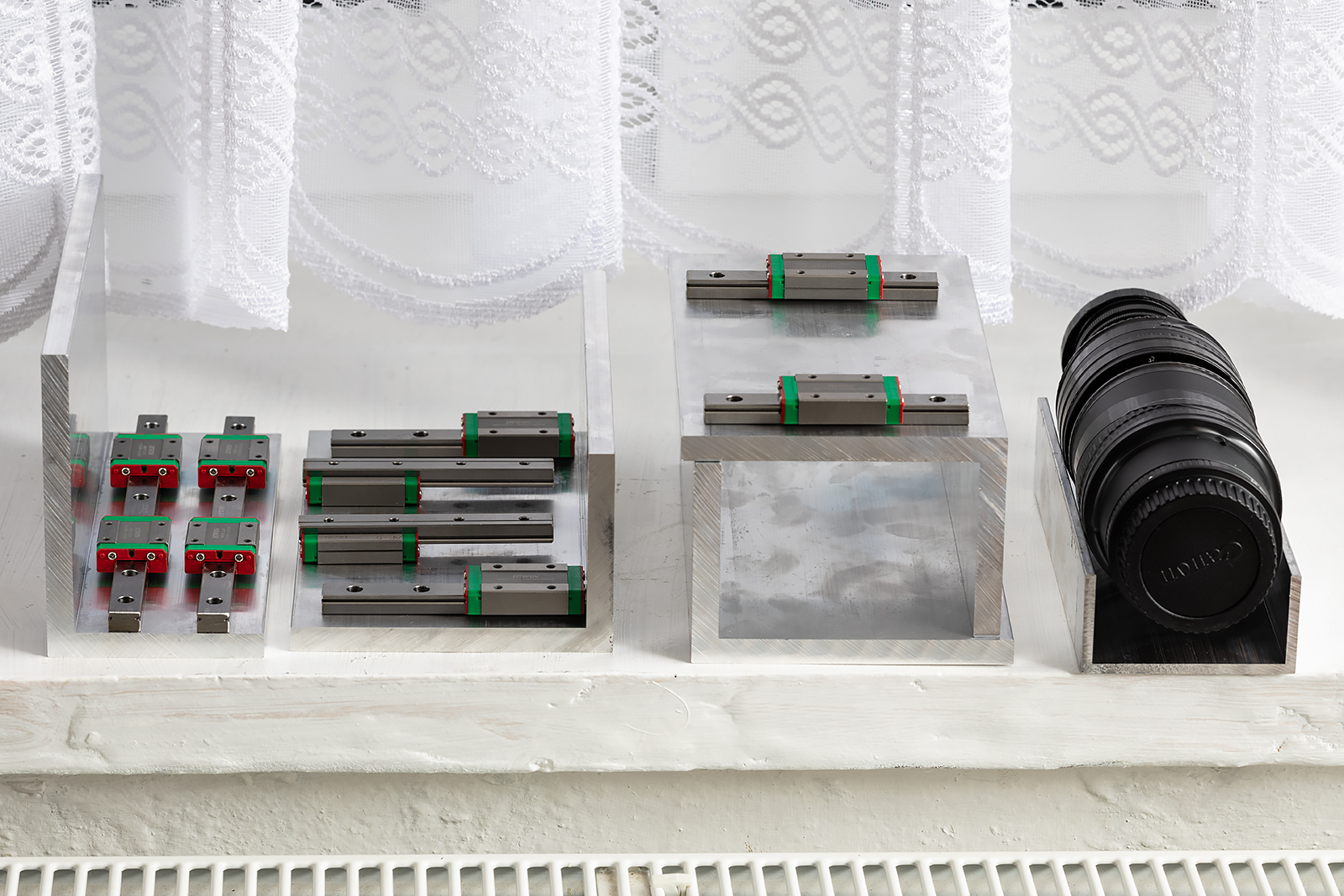 No trošku sem si naložil víc než sem čekal, ale snad se povede. :) I když třeba na hliníkových profilech by se to chtělo vyřádit frézkou, která není přítomna. Pak to s tím krokováním prý není tak "vesely" (chybovost) a nakonec, aby toho nebylo málo, tak světla by to chtělo víc.