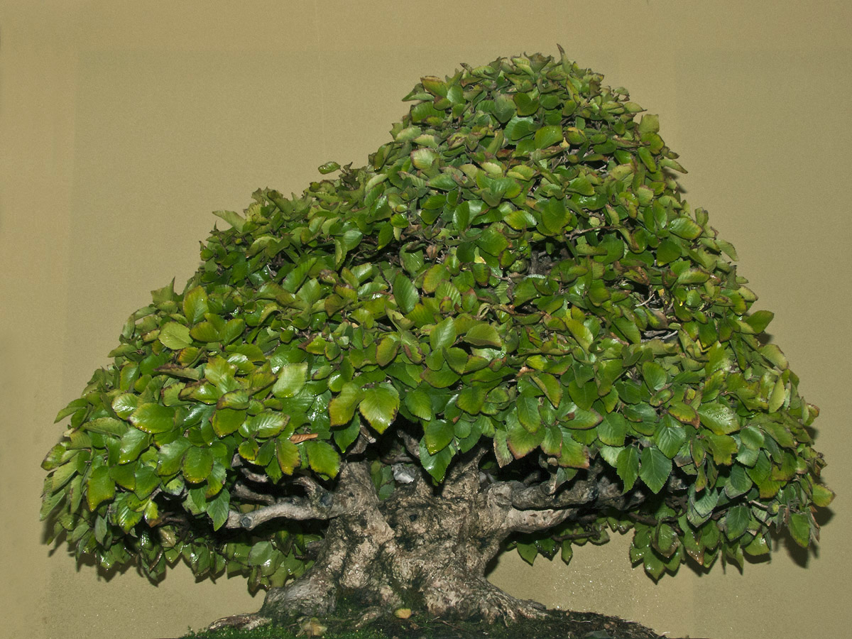 Dám aspoň něco z výstavy bonsají - v šeru, bleskem, čerstvě pokropené (y)