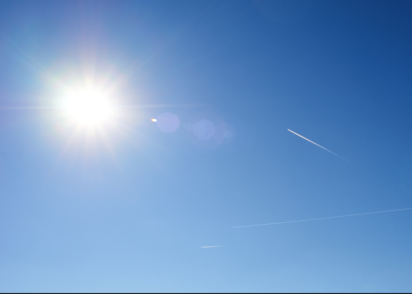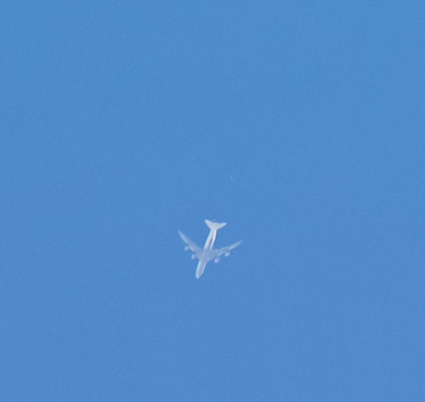 Při focení oblohy, Měsíce a Slunce, letadlo bez čar, na ukázku, že to občas je :-)