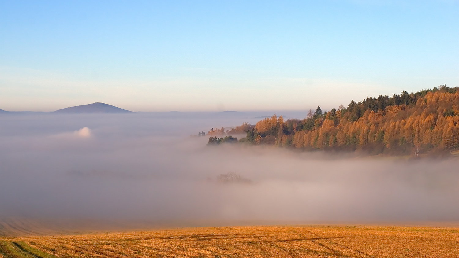 Pěkné šumavské pláně, Bohouši (n). Co to vykukuje z té inverze, Boubín?