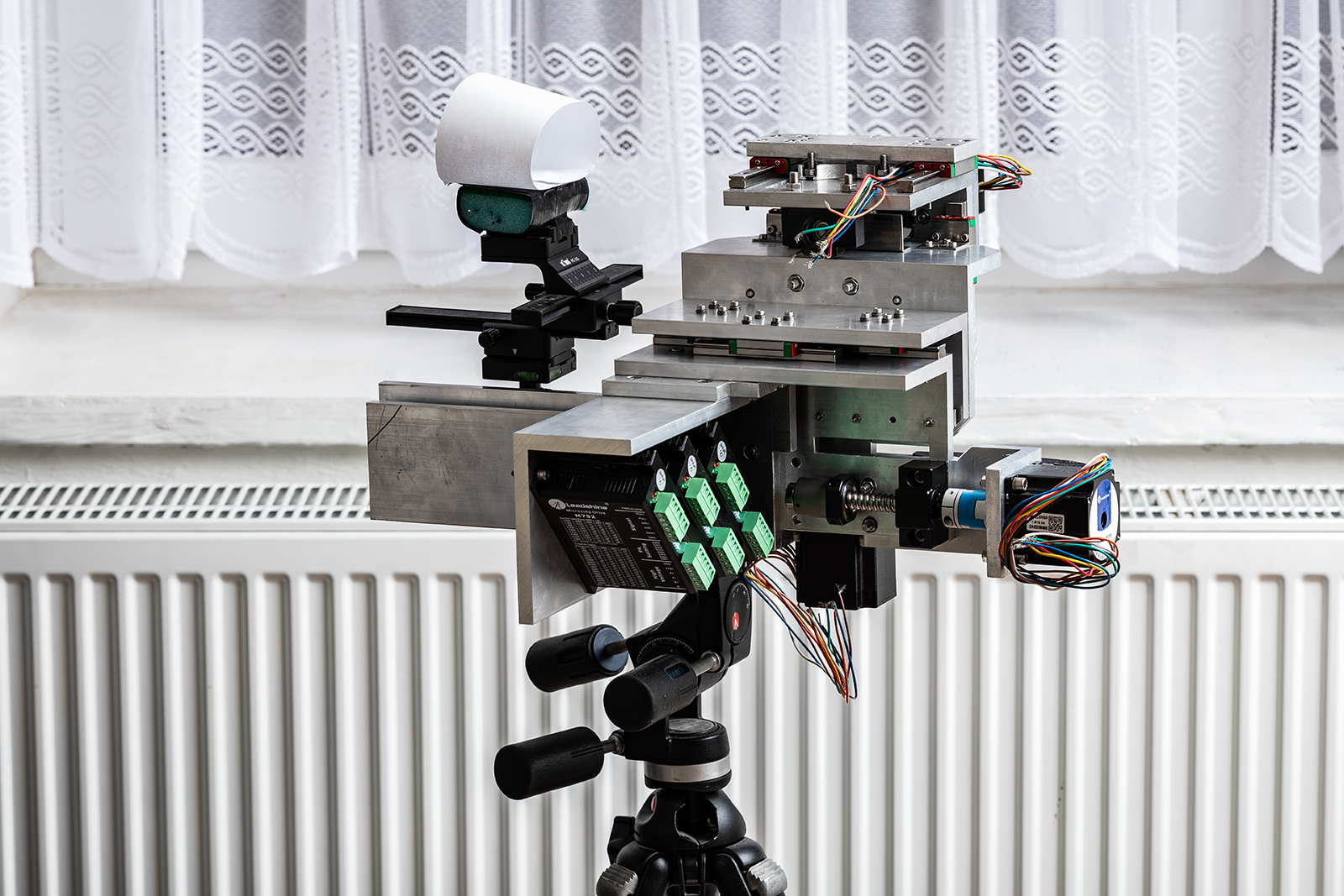 Jinak zaostřování samože je. Buď ručně posuvem vepředu se scénou nebo přeostřováním se právě profocuje, aby se dosáhlo velké hloubky ostrosti. Takže osa Z ostří / mění místo zaostření. V tom složenybm stavu to bude dělat motor na držáku trčícím zezadu doleva.