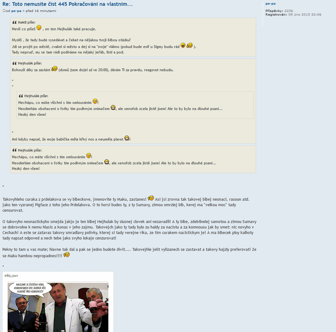 Bohužel, uživatel pe-pa je prolhaný darebák, sprosťák nejvyššího stupně a velmi neurvalý "diskutér".