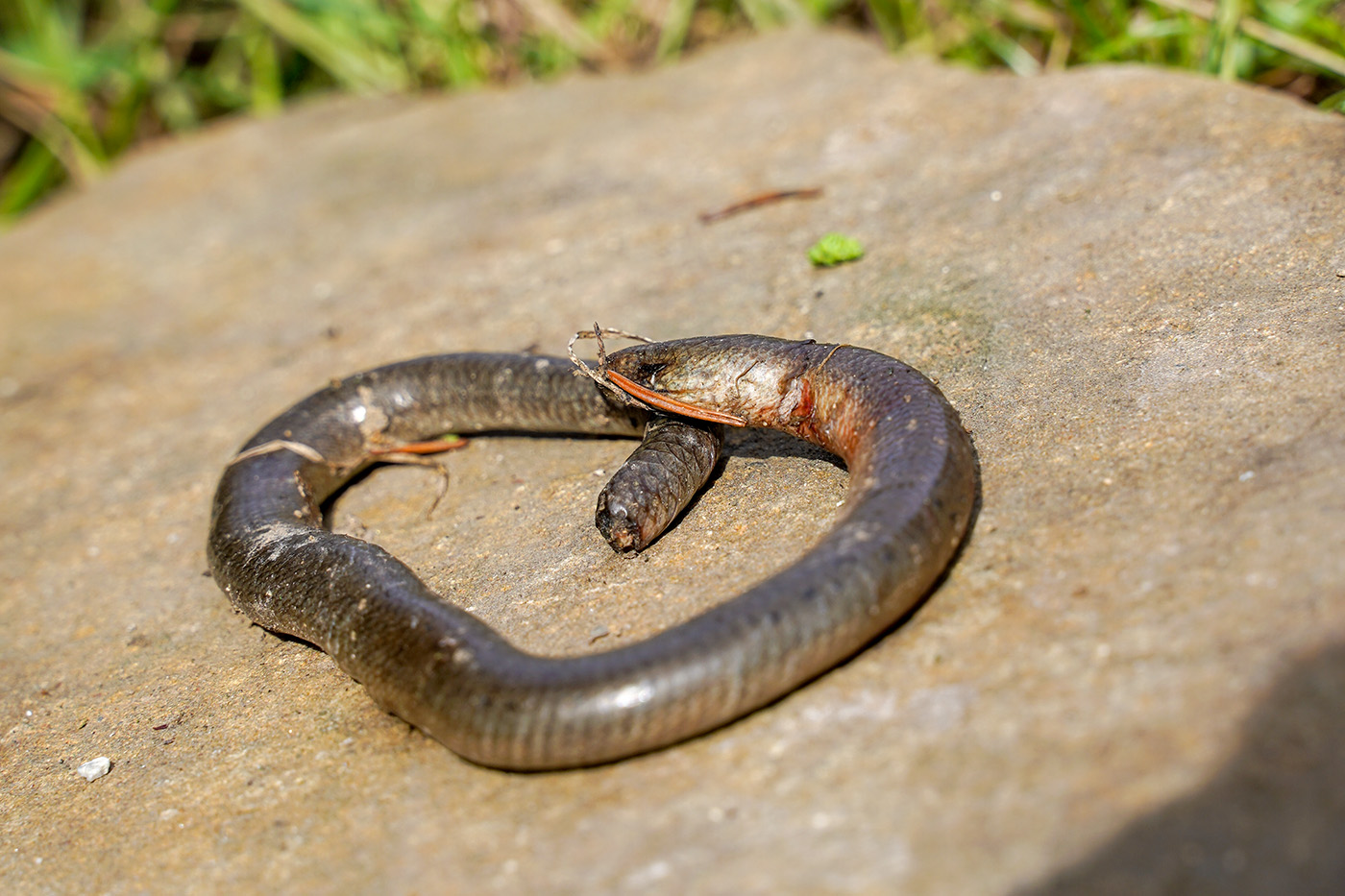 Napřed jsem si myslel že tam leží zkroucený kus drátu a on to had. :D