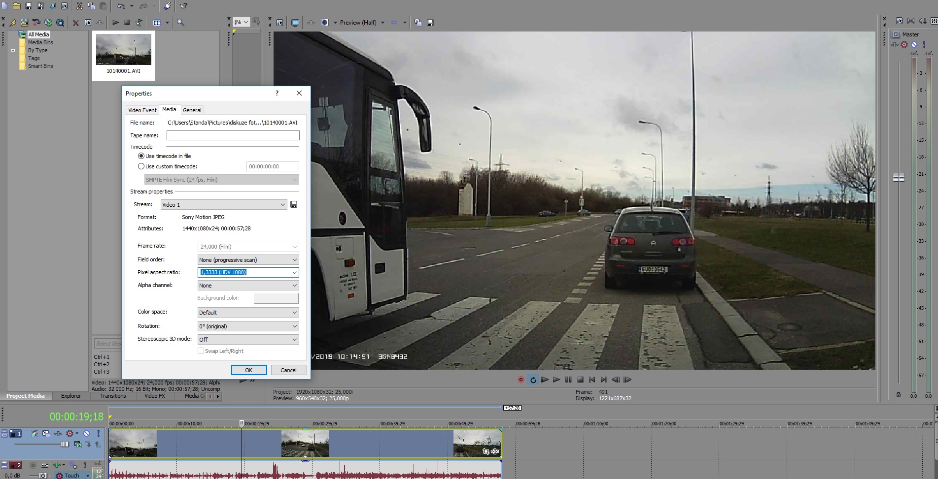 Josefe, ta kamera má nastavený poměr stran 4:3 a video přitom je na výšku, takže má být 16:9 a je tam PAR jako u HDV2 kamer Sony.