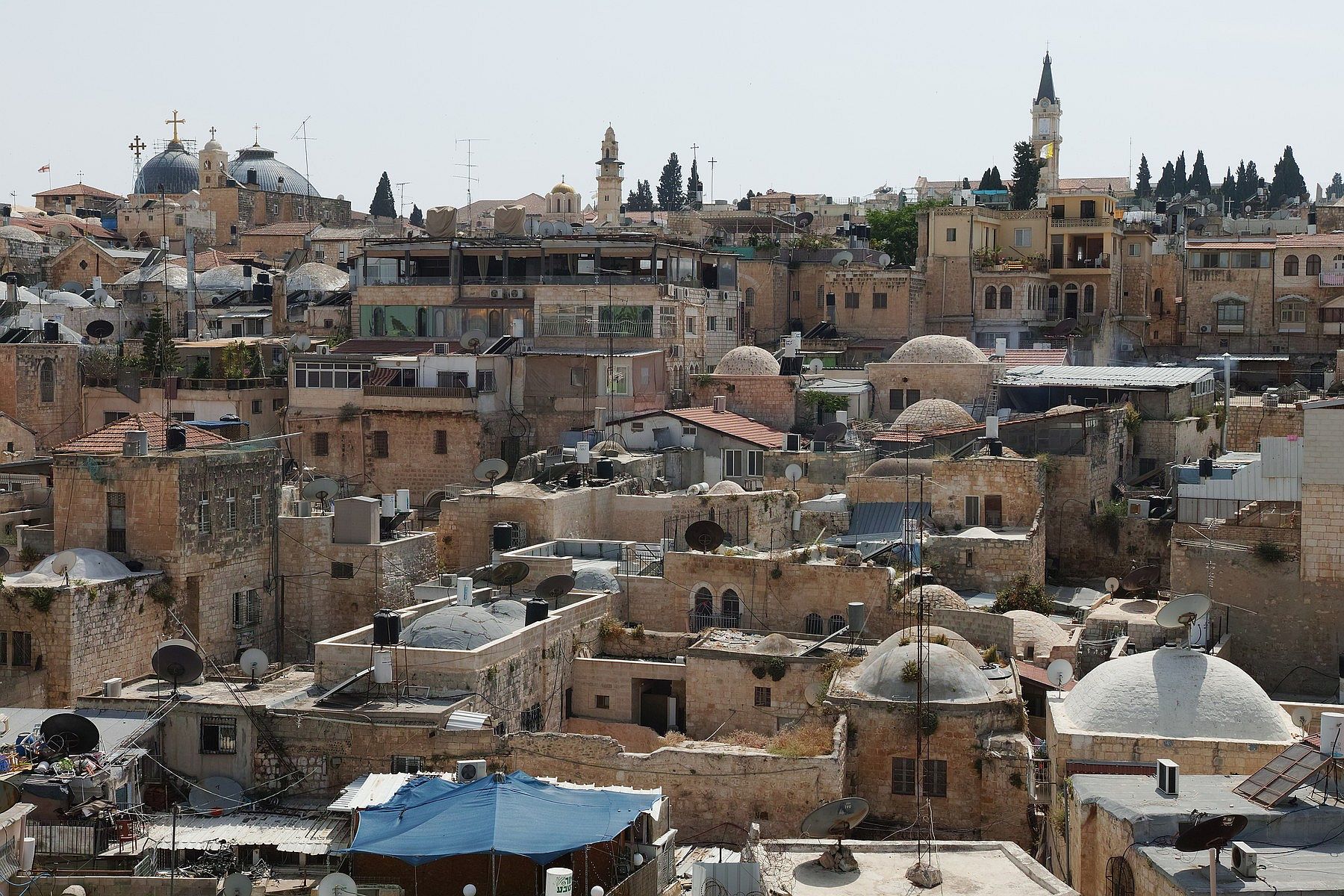Jarouši to byly jen zkušební cvaky. U Zdi nářků se dnes fotit nesmělo (byl šabat)- Mohl jsem fotit jen z dálky. Ještě se tam několikrát podívám. Dám dvě fotky z vyhlídkové terasy známého rakouského hospicu. Fotky jsou pouze z JPG. Jarda
