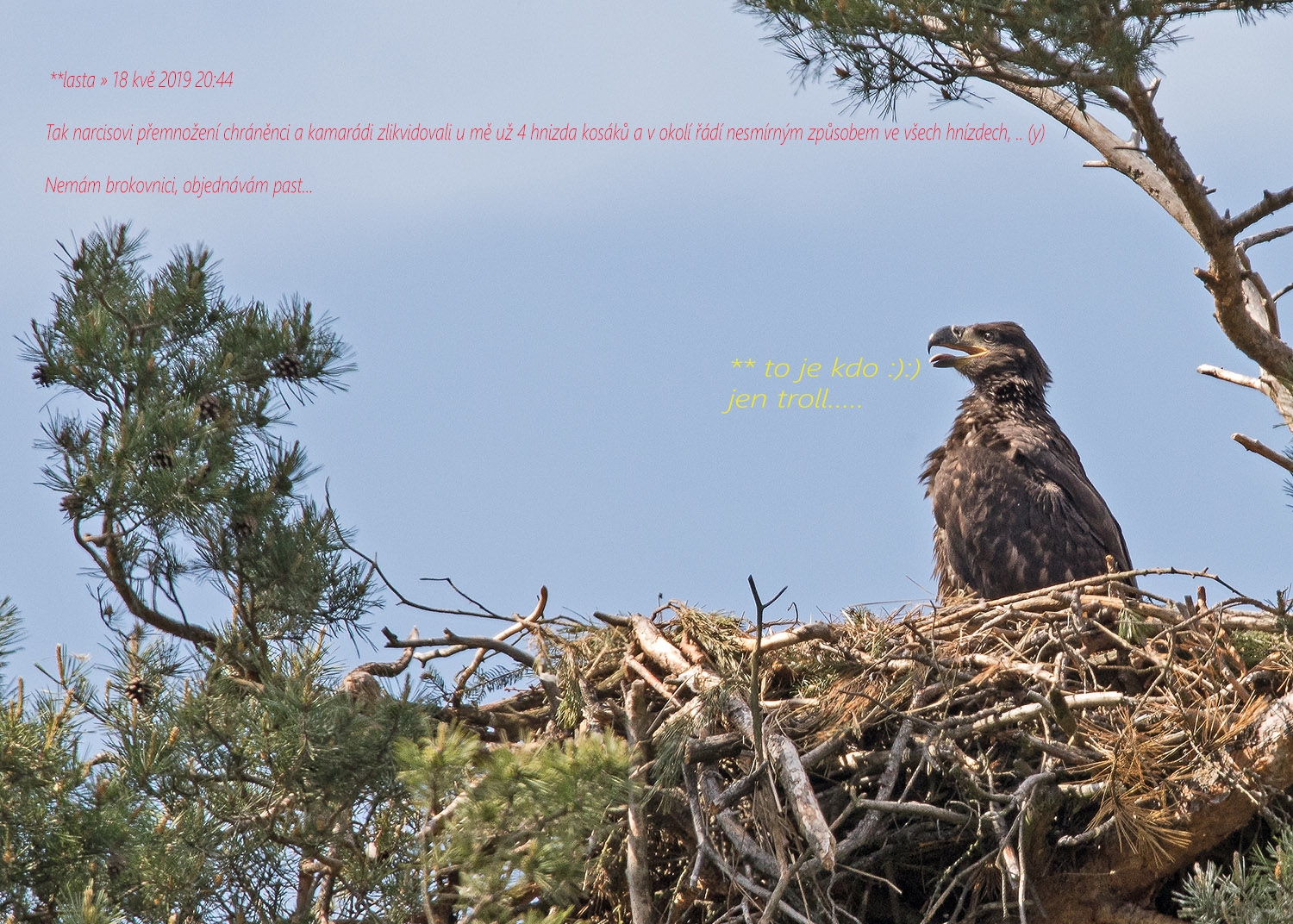 , tak asi pravděpodobně nemíním škůdcem orla, ale jinou potvoru z jeho portfolia škodlivých chráněnců..