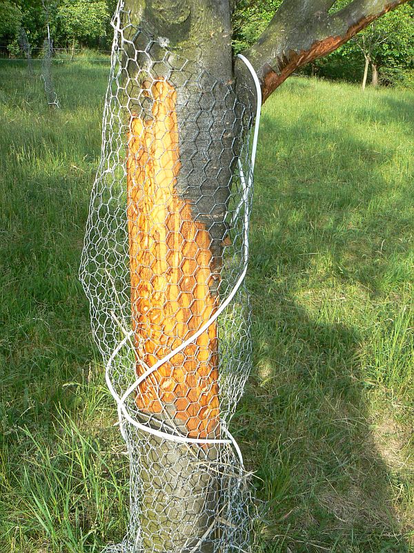 Strome, zelené travičky měly ovečky dost, ale jaksi se jim líbily stromy :cry: Ale i takto ožrané měly ještě kousek lýka, takže se mně je podařilo zachránit. Ale už moc nezbývalo. Majitelé ovcí stromky jaksi ex post obalili, ale bylo už pozdě.