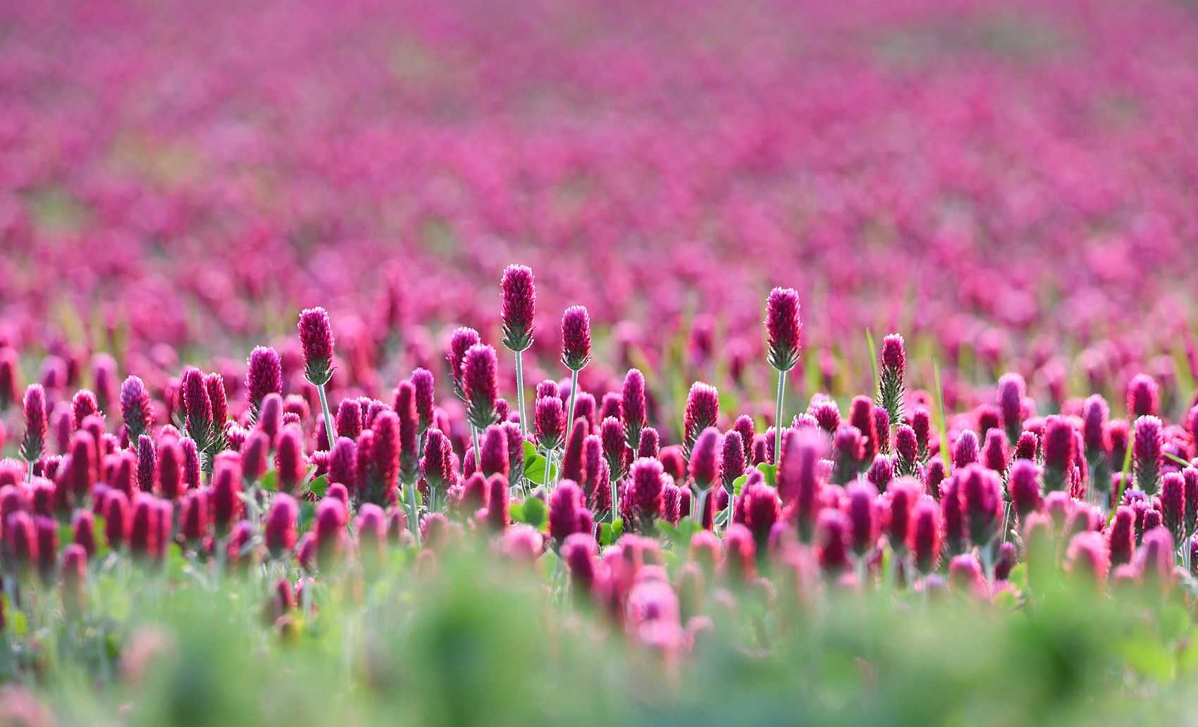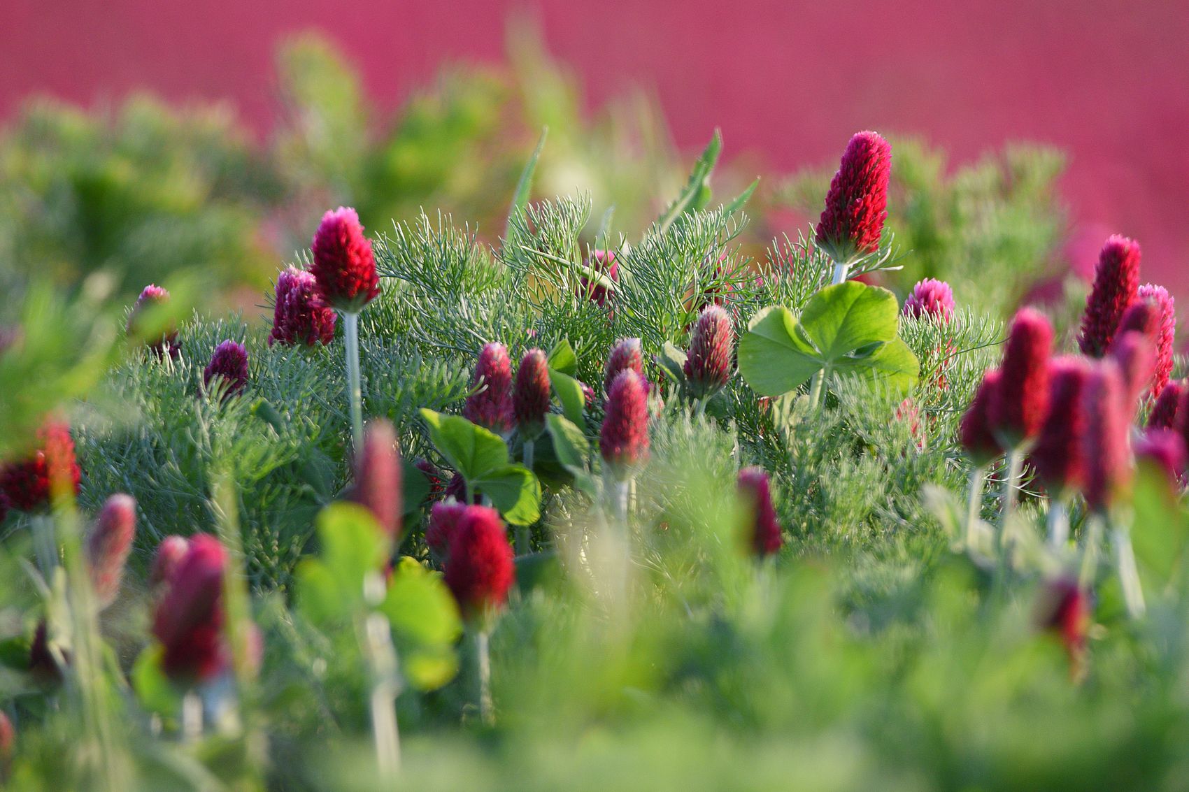 Jetel inkarnát....divné jméno ale v krajině příjemná barevná změna, Já takhle kdysi narazil na krásně modrý pruh pole....Svazenka vratičolistá...taky prapodivný název ,ale úplný ráj pro včely....kolem pole to byl samý úl a bzukot byl slyšet na pěknou dálku :D .