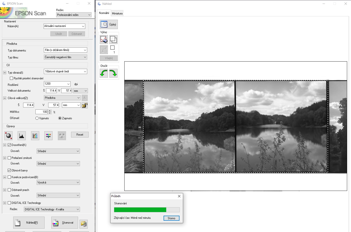 Pentaconu, ostření, objektivu, vyvolání a skeneru, tedy který ze dvou programů to jak udělá. :D