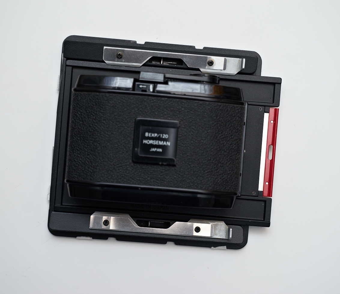Tvoje držení kazety je tak trochu "outdoorové". Mám něco podobného jako máš Ty i u Mamiya press super 23. To se zcela určitě nenechá srovnávat s úchyty kazet a matnice u velkoformátových kamer. To je zase naopak takové "salonní". Nemá rádo velkou přidanou námahu. Opravdu čistě jen zasusnout, exponovat a ven. A nejlépe ještě pod jeptiškou, aby na film nevniklo nepatrným odklonem kazety světlo. :-)