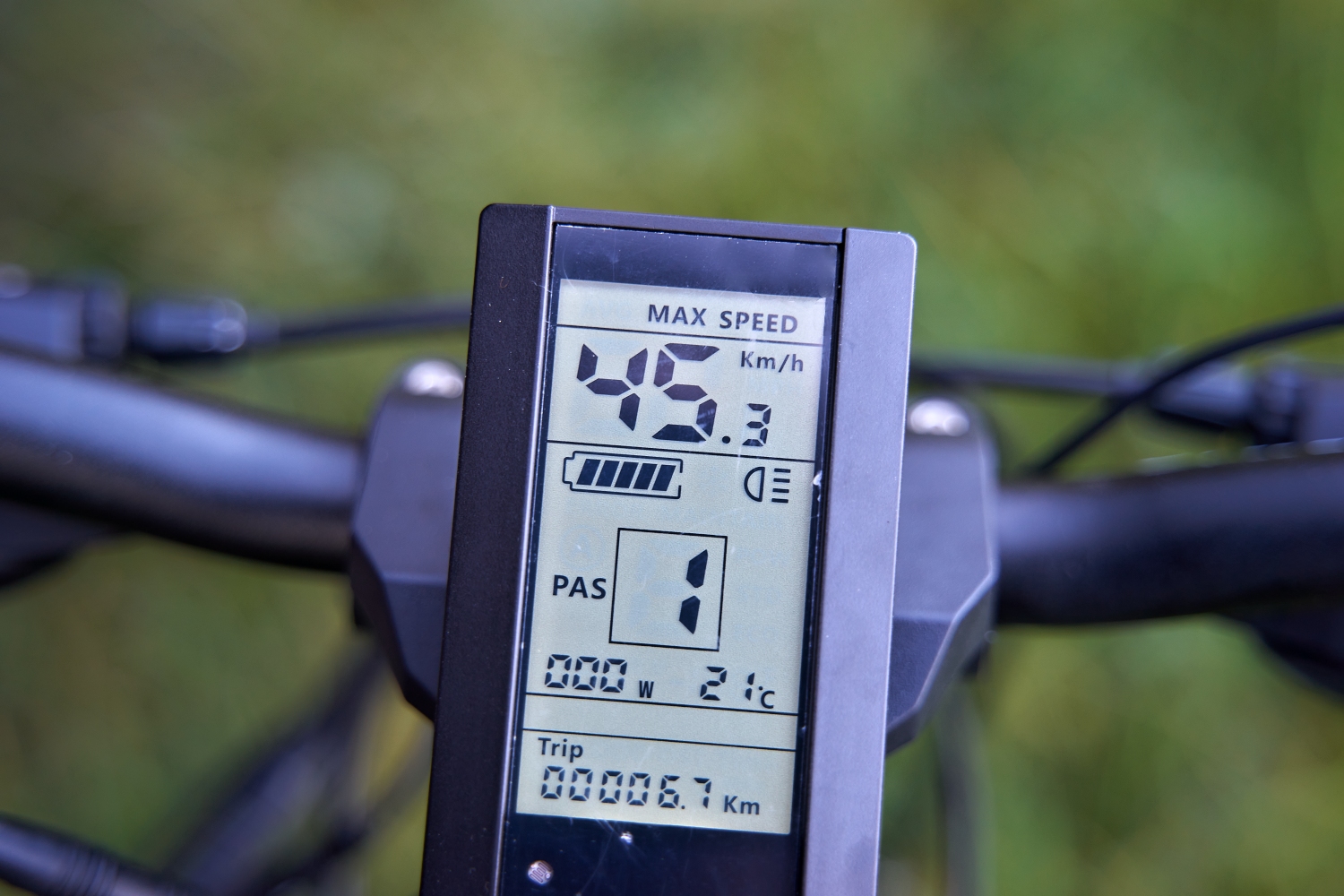 Displej na kole ukazuje i aktuální spotřebu ve Wattech. Většinou 200, až 300W s mírným šlapáním