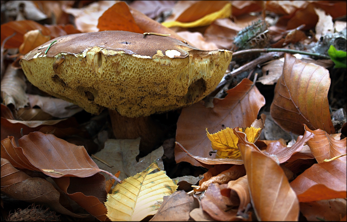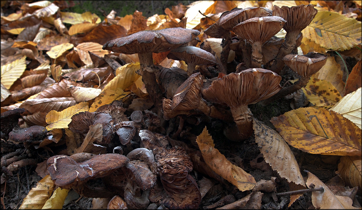 Přidám další profláknutou pařezovou houbičku, leč je to více jak měsíc staré. Žel když jsem na ni přišel, tak bez foťáku. Přeci ji tam nenechám, nechal jsem jen několik menších plodniček a druhý den vzal foťák.