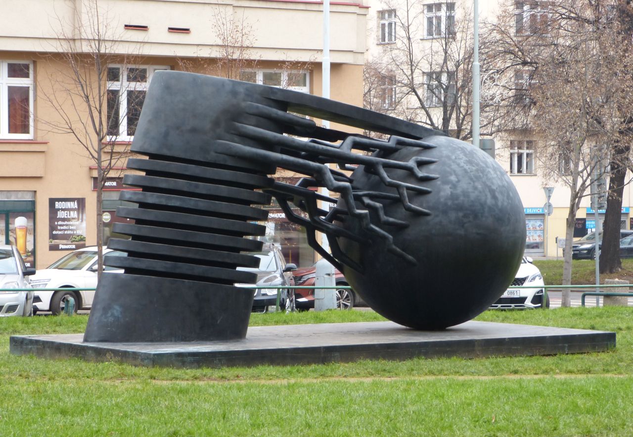 Dvě sochy přes ulici Jugoslávských partyzánů. Jedna je prý Nikola Tesla, druhá je prozatímně na místě, kde dříve stával maršál Koněv. Časy se mění. Zika asi zatím nevadí.