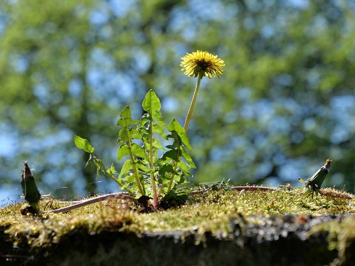 Žluna na stromě a pampeliška na pařezu :) (n)