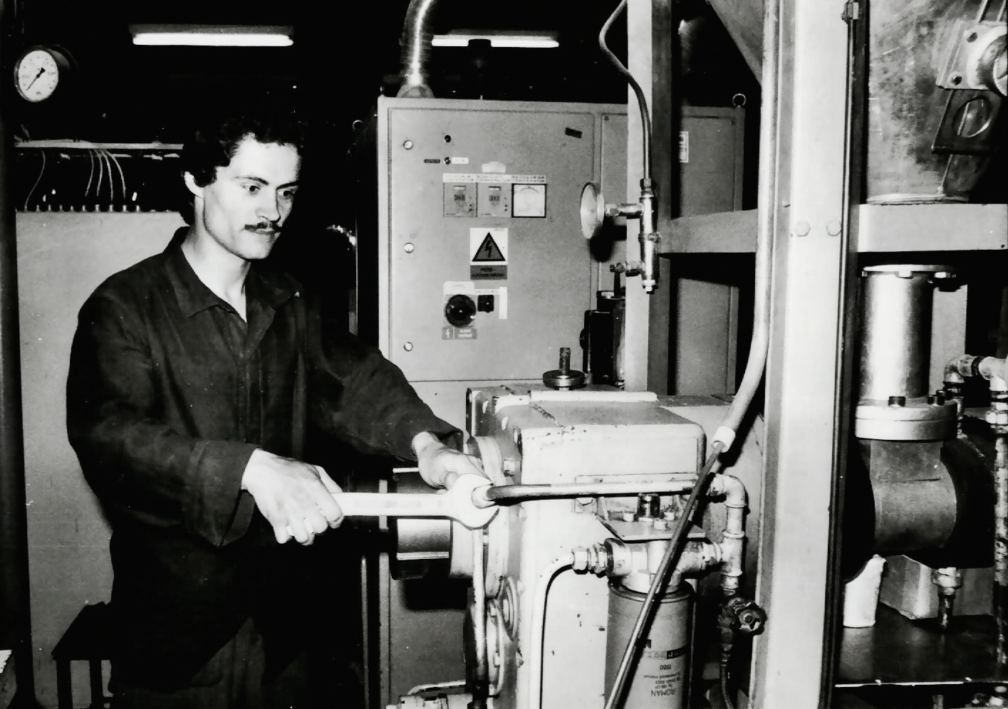 Kontrola olejového potrubí extruderu linky Plastbau. 1985.