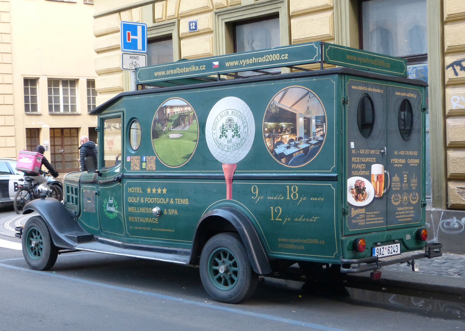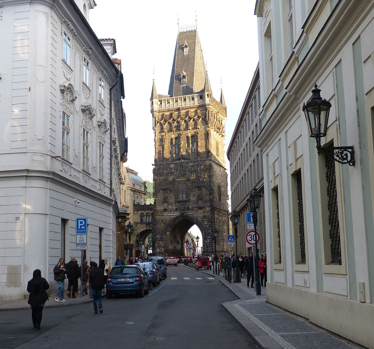 Prašná brána a procházce bude konec. Na ČNB vpravo směr Jindřižská věž a na tramvaj. A jeden reklamní vůz asi na golf. Myslím, že tam stává jako reklama skoro pořád.