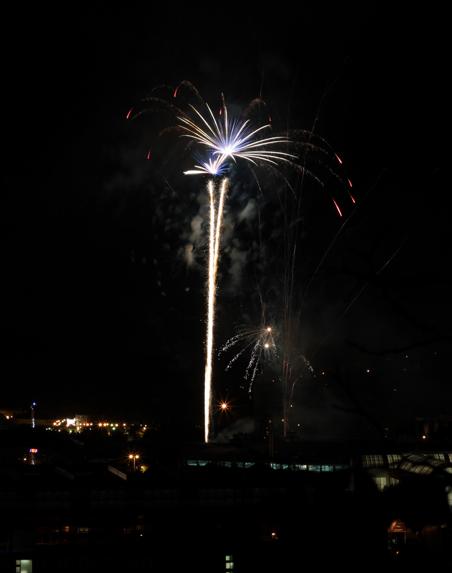 ťuky ťuk, toš dobrý večer včera tady začínala ohňostrojná mánie, tak něco málo z místa ne ideálního ale těsně vedle ideálního , být to klasicky a ne na výstavišti tak si chrochtám odklonovávat větve akátů se mi nechce