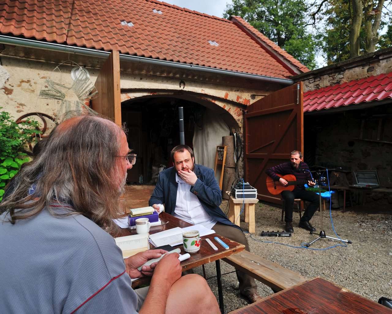V pátek měl pan farář ve Svatém Kříži benefiční akci. Mají krásnou farní zahrádku (n) . Trochu to tu zahltím. Byla hudba a taky třeskutý verše "prokletých básníků". Zahradnček, Deml, Jirous, Holan... Chtělo by to víc času a klidu.
