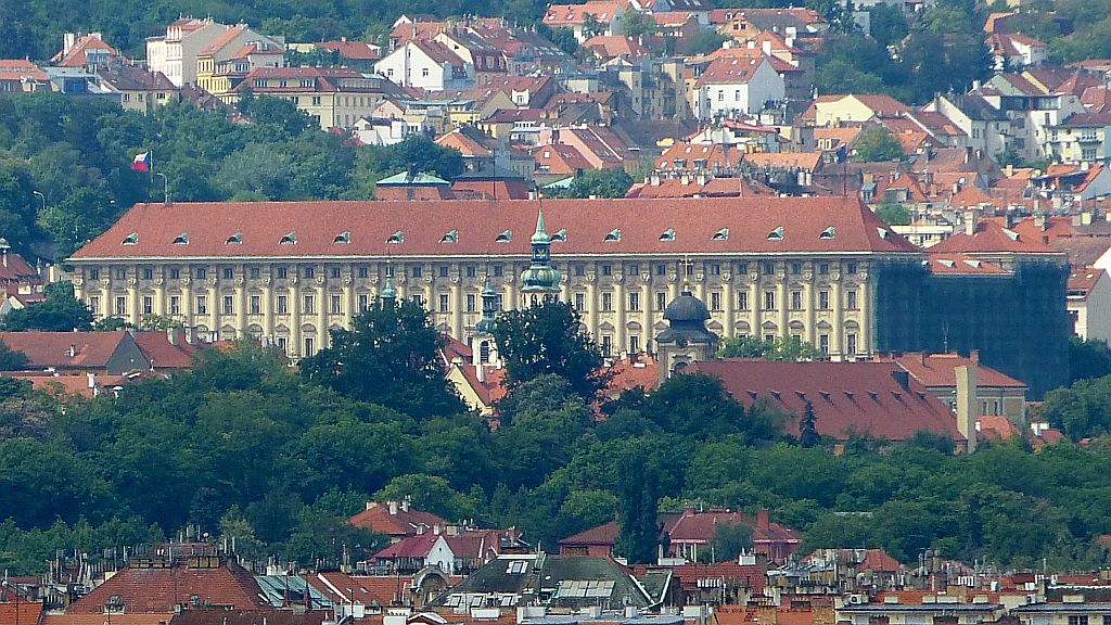 Pohled z okna - Pražský hrad, v popředí dole Úřad vlády