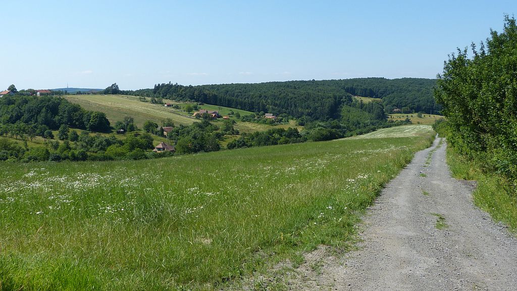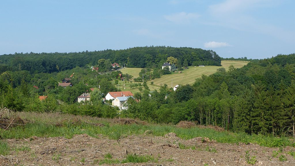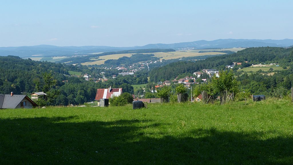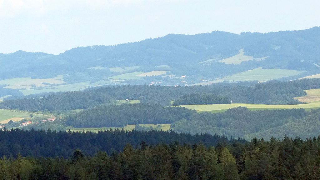 Vlevo na horizontu vysílač Tlustá Hora