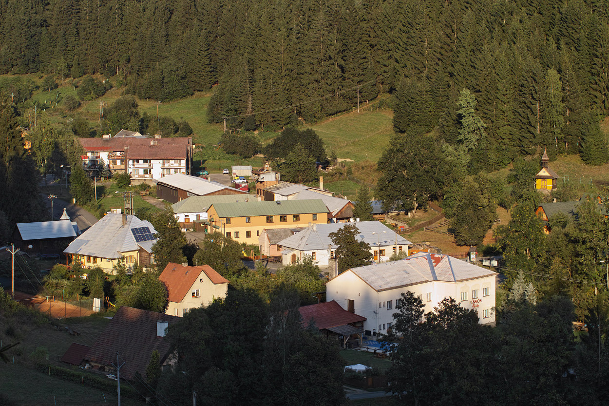 Dám páteční podvečer ve Velkých Karlovicích. Je to ze stativu se Sigmou 70-200/2,8 DG. Poslední dvě jsou z rozhledny na Miloňové. Je možné, že dřevěná konstrukce a vítr se na ostrosti trochu projevily, viditelnost za moc nestála :cry: (y). Problém s moire jsem nezaznamenal ani na střechách ani nikde jinde. Pravidelným rozmístěním pixelů na čipu to asi nebude (viz nepravidelnost filmového zrna vs. čip), nejspíš v tom jede pouze ten Bayer...