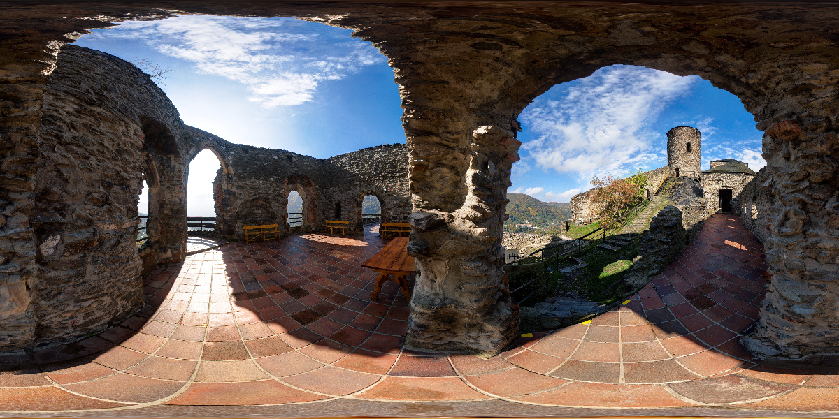 Ano, ty 3 expozice jsou kvůli rozšíření dynamiky. jinak bych třeba u toho hradu měl věci ve stínu úplně černé a půl oblohy v přepalu. Hlavu jsem si dlouho chtěl vyrobit, protože jsou děsně předražené, ale nakonec jsem nepřekonal svou lenost a koupil Panosaurus 2. Sice se docela pronese, jeho ovládání je maličko spartánštější, ale slouží vcelku dobře. Při těch 17 mm potřebuji 3x12 snímků do obvodu. Lepší by bylo ještě trochu hustější focení, ale to už bych se pak z toho množství zcvoknul. A fotím v 5 vrstvách, což je hodně na knop, někdy raději v 6. Potom ještě doplňkové snímky - jednak antireflexní, jednak antičlověčí (to když mi tam pobíhají návštěvníci, tak místa, kde někdo stál, fotím opakovaně, abych to mohl všechno prokombinovat tak, aby výsledek byl bez lidí).