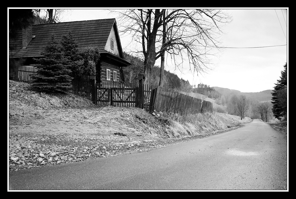 Dám jednu z novoroční procházky z Rusavy na Hostýn, zbytek bude trochu korespondovat s výše napsaným příspěvkem od Josefa stran černobílého filmu. Snad to, výjimečně, nebude moc vadit. Je to ze stejné trasy, jako byl novoroční návrat z Hostýna. A taky v podobném počasí, leden i únor 2008 byly podobné, jako současná zima. Fotky jsou v původní podobě, na názvy a rámečky už se mi nechtělo sahat. Skenováno Nikonem LS-50, film je vyvolaný procesem C41 v labu.