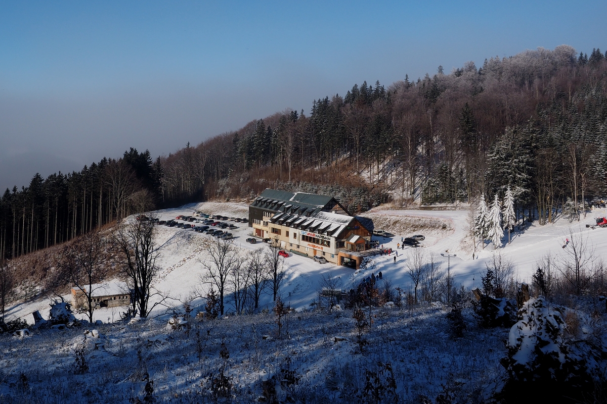 strome, já už se také věnuju zase něčemu jinému, než hraní si s mobilem :mrgreen: . Dnes se udělalo krásně mrazivo, tak jsem vyrazil na pár cvaků a cestou na kopec se zastavil na letos, pro nedostatek sněhu, poprvé spuštěné sjezdovce. Tak přidám pár snímečků: