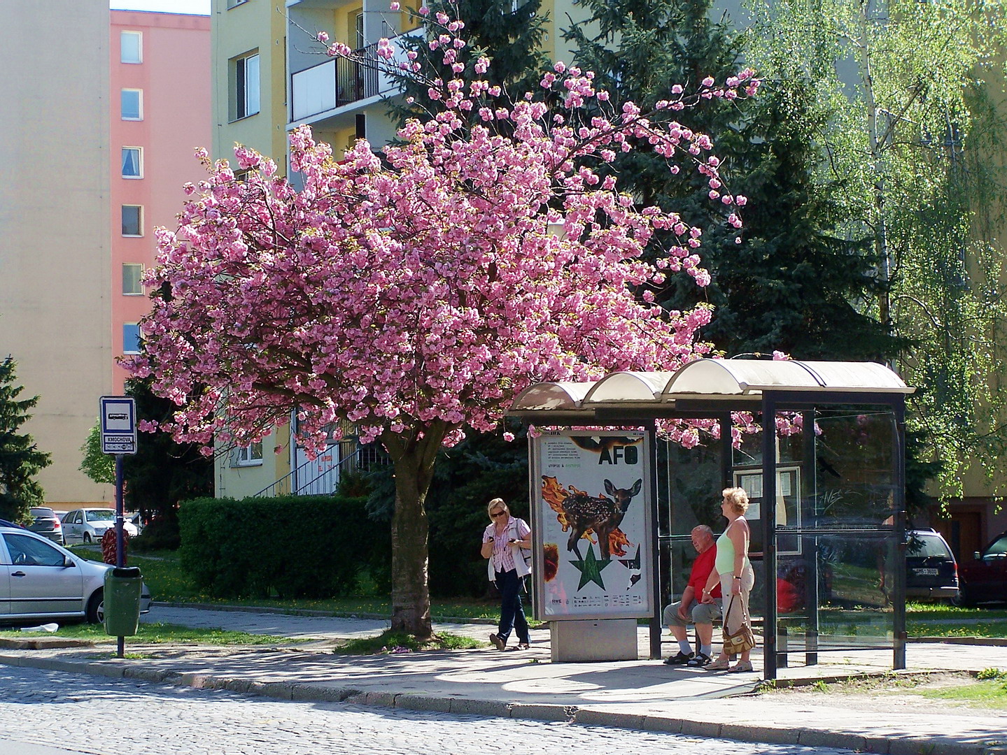Olmic - zastávka MHD a sakura