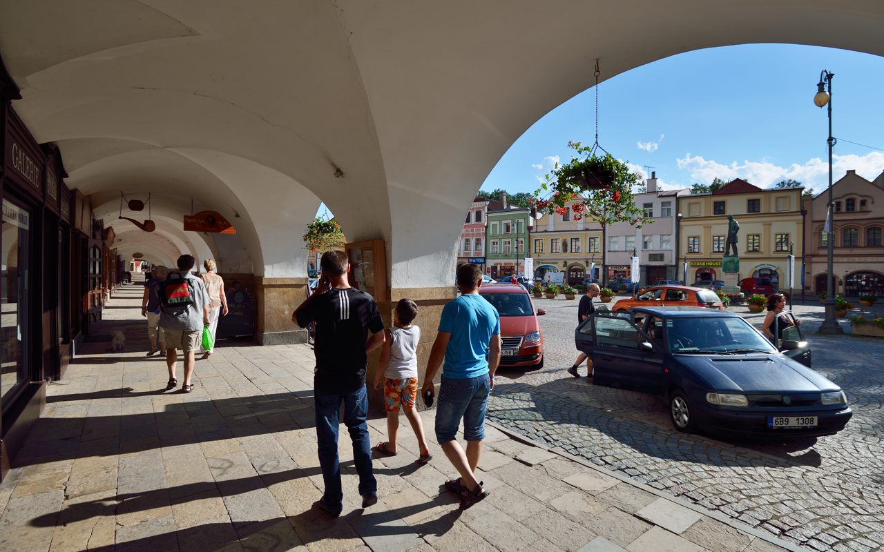 Pěkný údolí. Nějaký široký cvaky - rozpálená Litomyšl z podloubí.