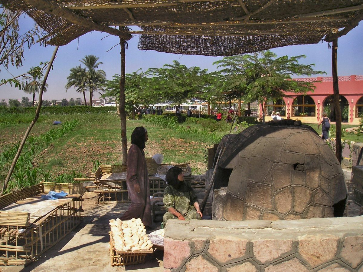 A tak vypadá skutečná funkční pec v Egyptě v koptské vesnici. Včetně pečících žen