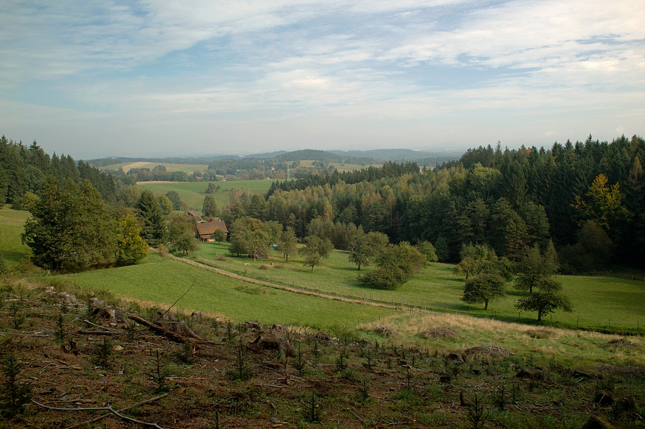 Na tomto snímku by to bylo dozajista velmi poznat, pokud se zaměřím na tu chalupu uprostřed, tak má HNĚDO-CIHLOVOU střechu a kolem jsou stromy - větve krásné hnědé. Pokud bych toto cvaknul jakýmkoliv Merrillem a jakýmkoliv sklem, byla by střecha z pálené cihly a větvemi by prolejzala magenta, mimojiné u všech stromů, kde není tolik zelené... :shock: