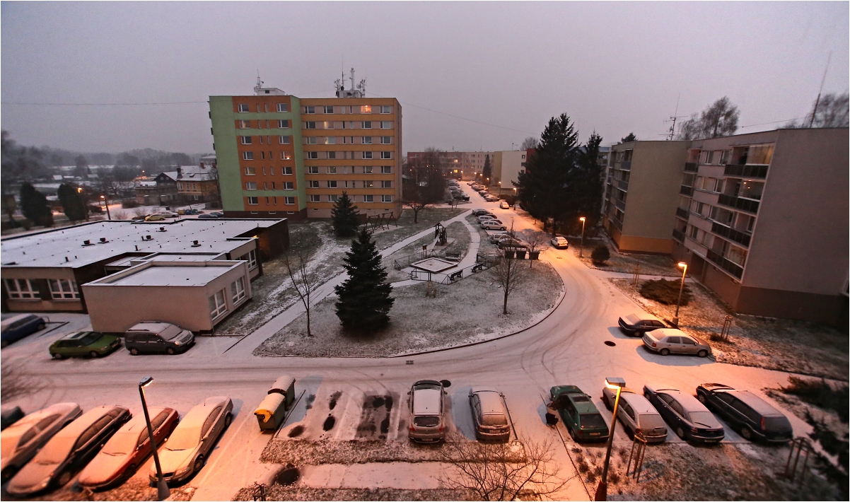 Včera se tu krásně vyčasilo, slunce zářilo o stošest, tak jsem cvakl jednu z balkónu, když už jsem nikde nešel. Dnes je zase obloha šedá .