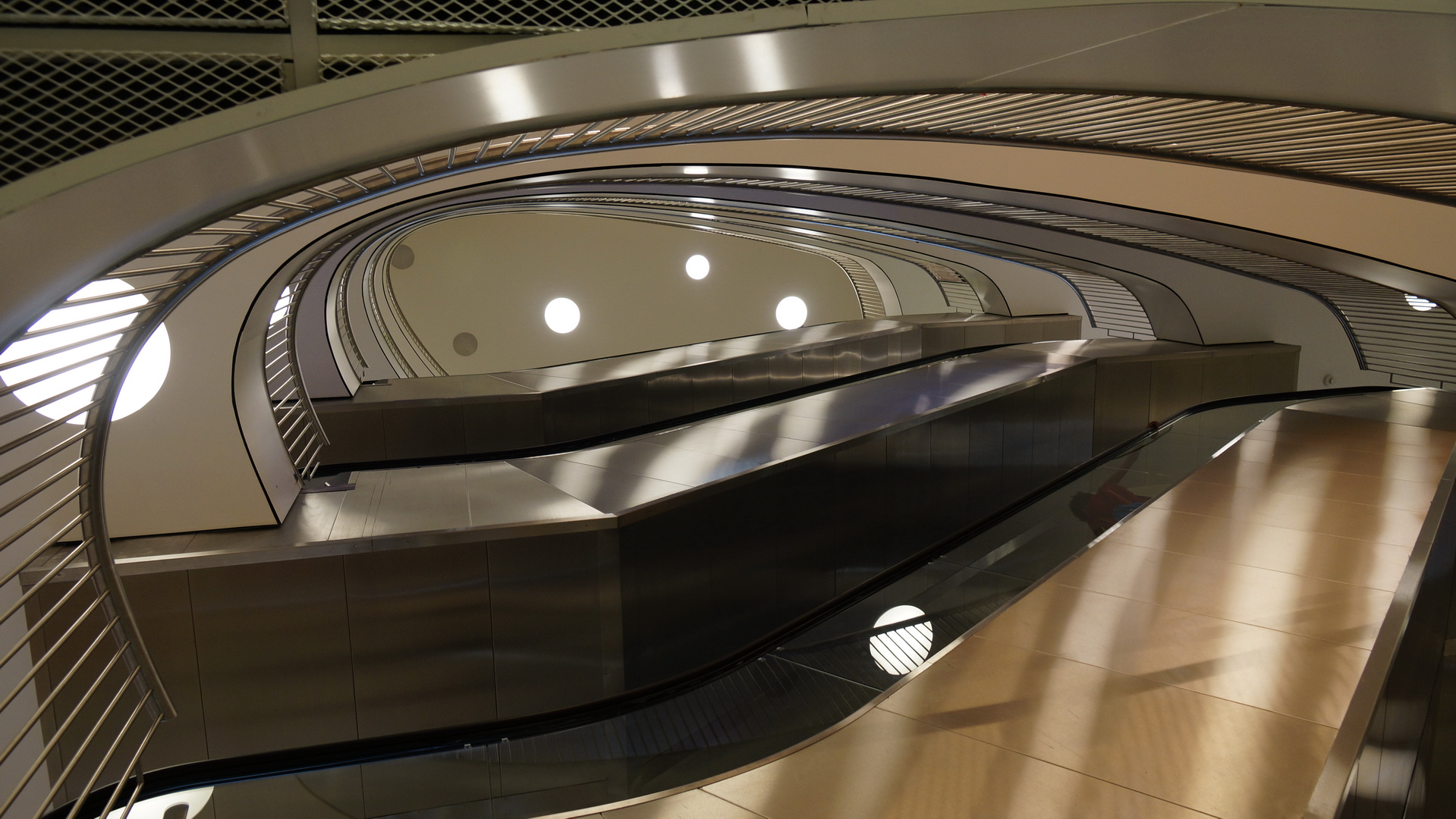 Vidím, že je to tady spíše samá moderní... architektůra, tak dobře, dávám obdobu známé fotky starého točitého schodiště ale naní moderně... - Obchodní centrum Letmo Brno: