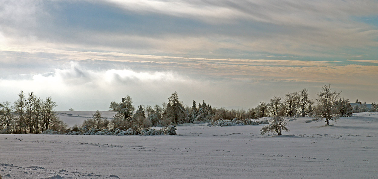 Dám kousek Zlína z Jižních Svahů. Přechoďák nemaje, upřednostnil jsem expozičně všechno ostatní před erbenem, z RAWu jsem to líp zachránit nedokázal. Je to minulá neděle (1. února), dnes je tam sněhu nejmíň dvakrát tolik. Na zahradě máme 15 čísel, 260 m. n. m.