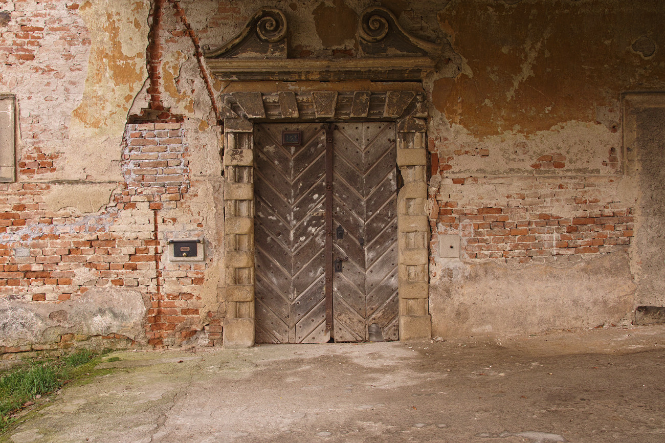 Mám tady něco cihel, starého dřeva a rzi. Druhou fotku už jsem dával na podzim, ale patří k té první, pro dokreslení. Je to ten vchod pod plechovým nástřeškem.
