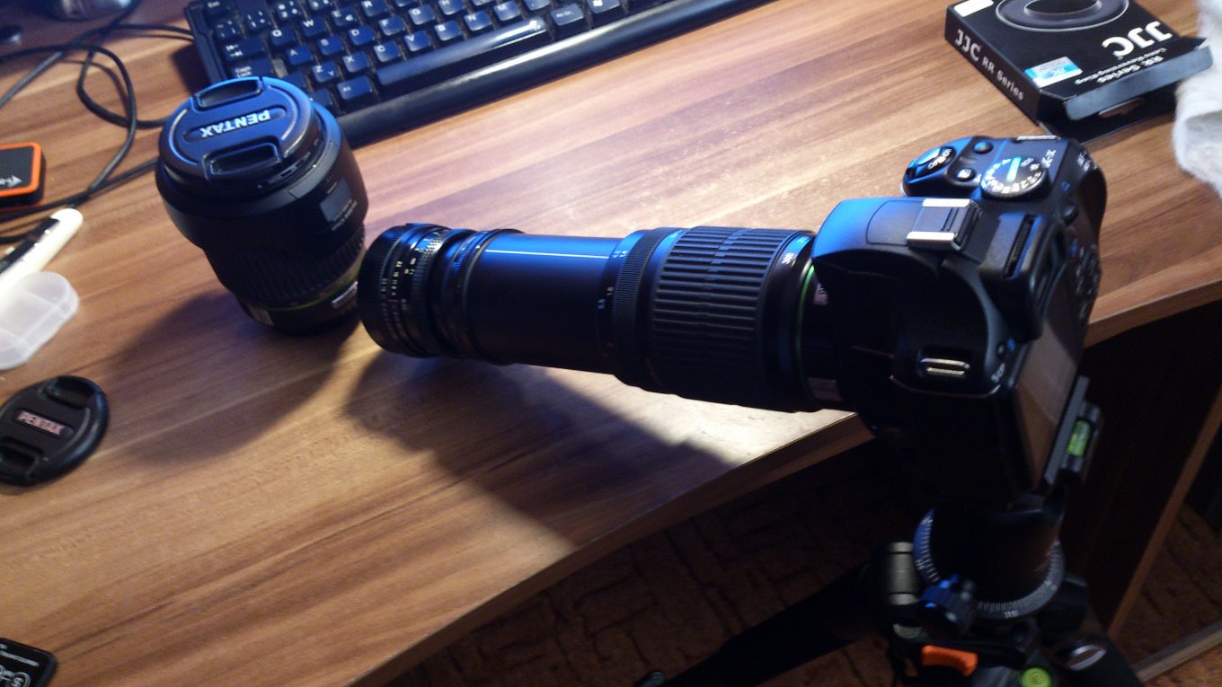 b) sestavu Helios + 2x telekonvertor s pentaxím bajonetem ??