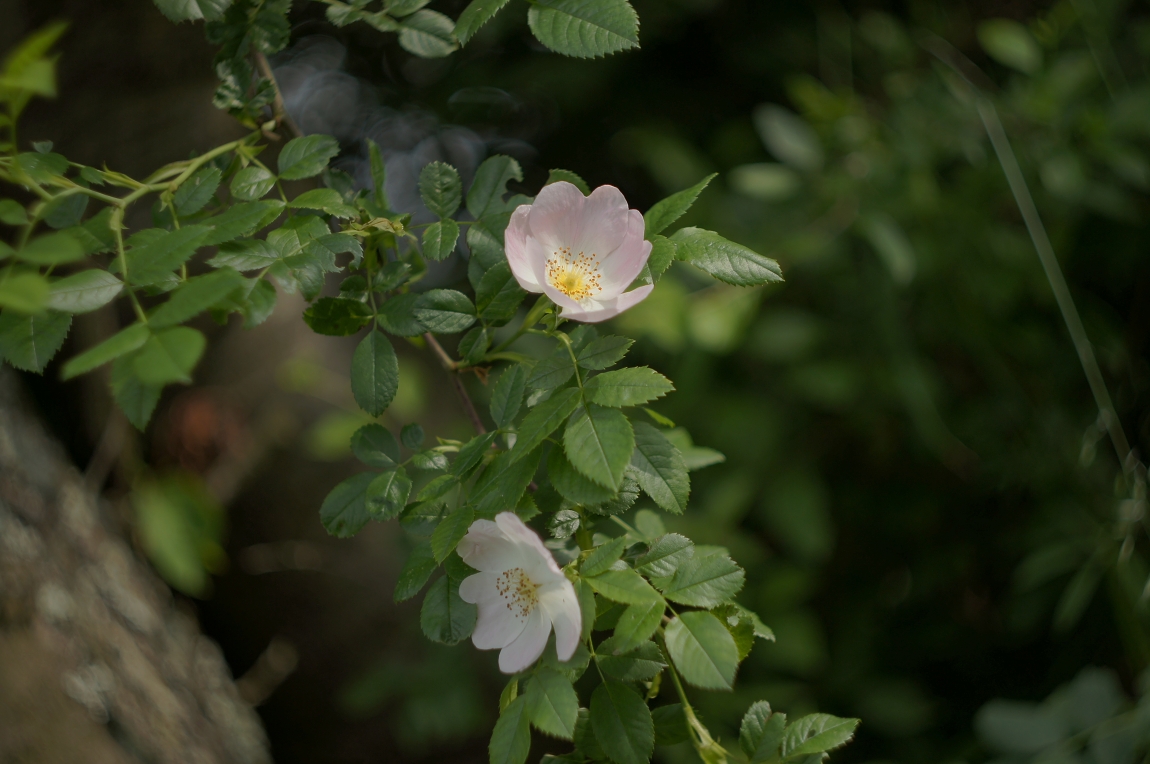 Přidám opět pár s manuálním objektivem. Splašila jsem na bazaru Zenit s Biotarem 58/2 červené T, byl vpodstatě za hubičku, no nekupte to. Tak jsem porovnávala s Biotarem bez T, s Téčkem to prý je sklo s antireflexními vrstvami či co to má být, zkrátka má být o něco lepší. Asi opravdu je, v každém případě ten nový kousek je v lepším mechanickém stavu, jde pěkně zlehka ostřící kroužek, na tom druhém musím trošinku vyvinout sílu. Na fotografování nic kloudného nemám, vyřádilo se u nás před týdnem krupobití, kytičky to schytaly, musela jsem se spokojit s šípkem.
