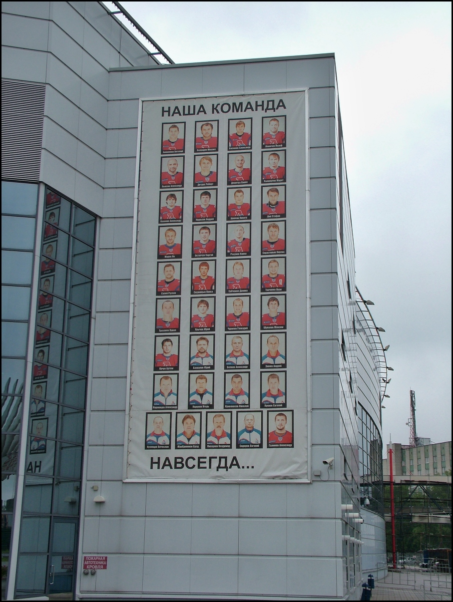 Kamarádi zdravím ještě pořád z Jaroslavli (žije tady 700 tisíc lidí, plus nás pár Čechů z autobusu). Dnes jsme opět proběhli pár chrámu a klášterů. Odpoledne se dalo do deště, ale řkouc, že: "když jsem tady byl minule z wermachtem, tak bylo hůř" Jsem se nechal spolu s dalšími šesti lidmi vysadit na nábřeží a dal se do fotografování řeky Volhy, spoléhaqje na to, že Pentax ná býti nejen prochotěsný, ale i vodě odolný. Jednu chvíli z něj kapala voda a já byl do niti promočený. Tak uvidím, zda se to projeví. Nakonec jsem sedl do kavárny ubrouskem ho utřel počkal až se trochu vypařila sražená pára z objektivu udělal obrázek kávy a zákusku. Také jsem se byl podívat k hokejové areně. A protože se mi to zdá nejzajímavější tak pár obrázku od arény.