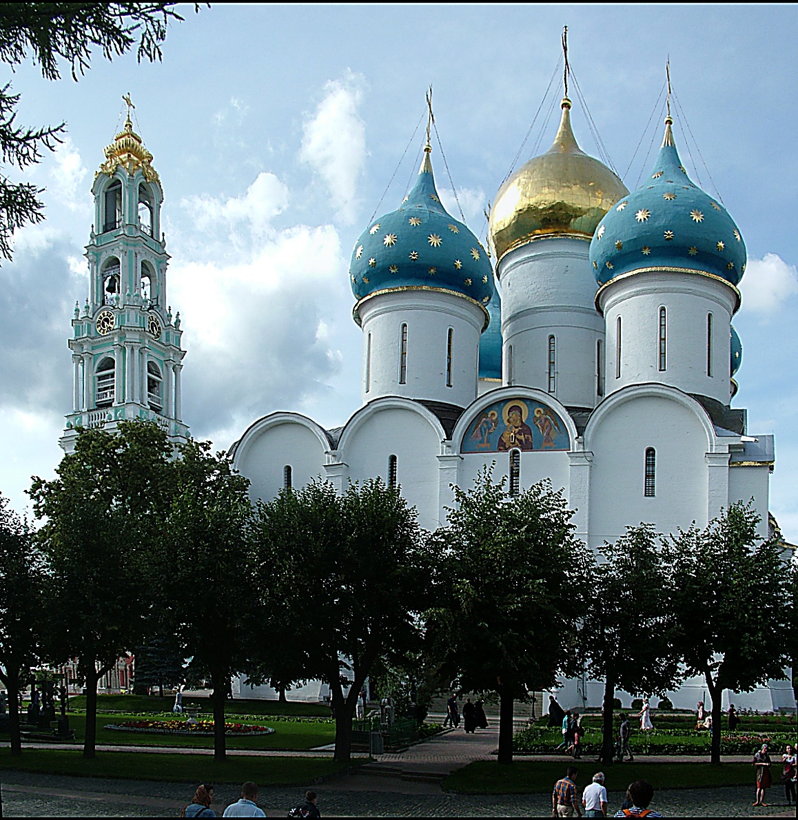 Zdravím kamarádi, dnes jsme se vrátili zpět na dvě noci do Moskvy. Dostali jsme ubytování opět v 19. patře opět s mizerným výhledem i když o málo lepším než na opačné straně hotelu. Dnes jsme po cestách silně unaveni tak žádné noční výlety. Ty si necháme zas na zítra. Dám jeden obrázek ze Zagorska, teď se to jmenuje jaksi jinak, ale nechce se mi hledat program. Nevlezlo to najednou do snímku, tak jsem jen tak od ruky udělal dvě fotky na výšku a v Zoneru složil. Nemaje stativu, tak jsem ani jinou možnost neměl.