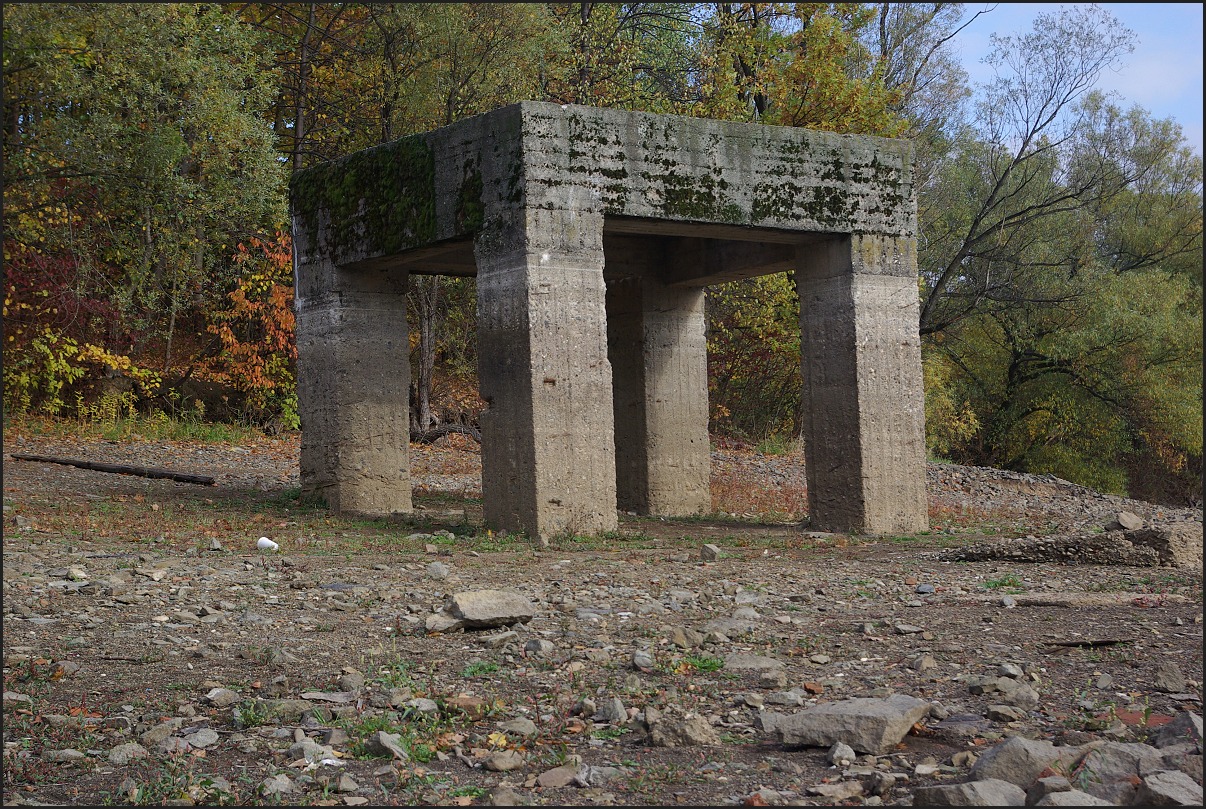 Tak mám tady obrázky základny lanového jeřábu používaného při stavbě přehradní hráze.