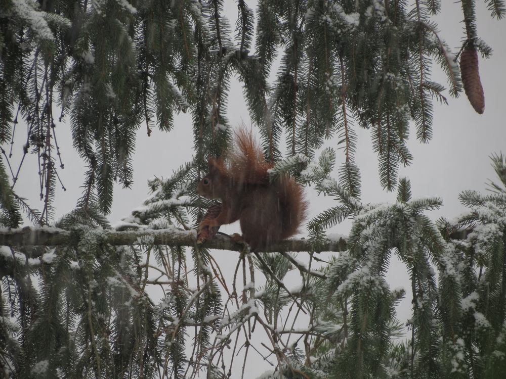Tak jsem vyfotil ten pohled z okna. Ono zrovna chumelilo a "cosi lítalo v korunách" tak jsem cvakal.