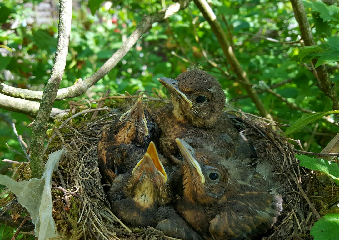 Hnízdo mladých Kosů . Foceno mobilem Samsung Galaxy s6 a selfie tyč