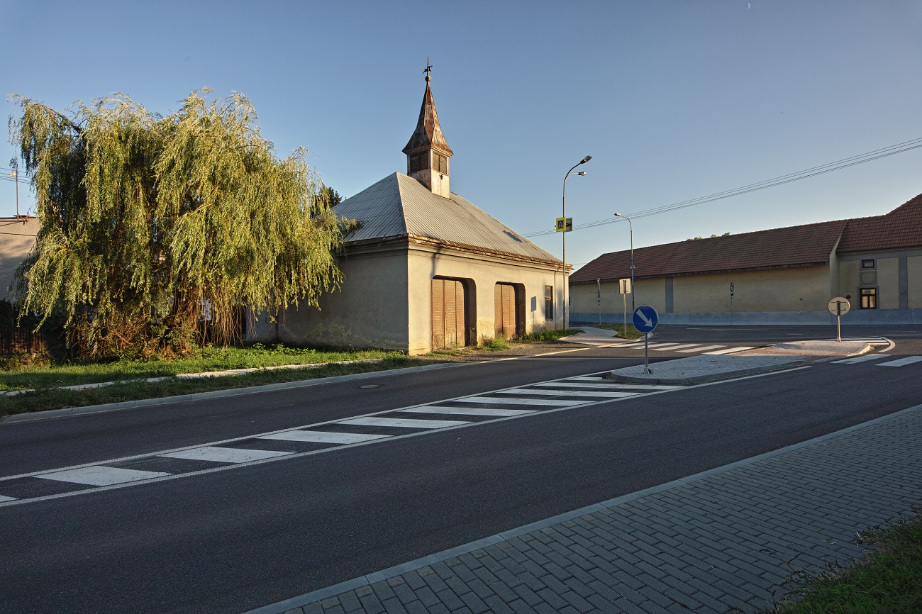 Domovina. Stará hasičárna a hostinec u Žáků. Měsíc jsem objevil až doma na fotkách. Ten zelený slunečník vyhovuje, Vladimíre? ;)