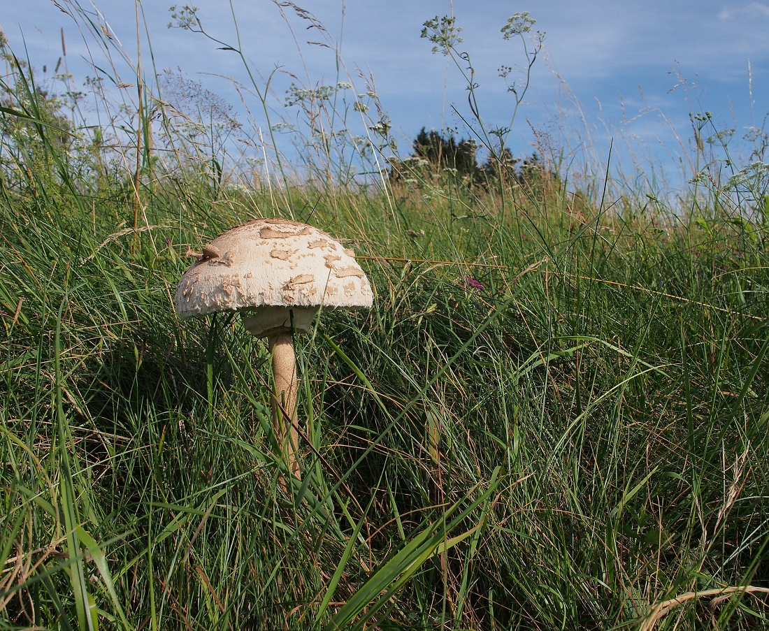 Jenom pro zajímavost přidám dnešní snímek oné houbičky z naší zahrady, vložené výše (malé babky) nafocené před týdnem. Porovnejte sami, jak povyrostla: