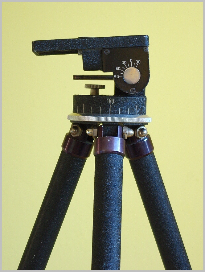 První věcí je ( hlavně pro sběratele nebo ,,nostalgiky") starý teleskopický stativ z Meopty Modřany ( bohužel jsem už o něm na netu nikde nic nenašel (y) ). Takže údaje co jsem změřil , zvážit apod.: složený 68 cm,rozložený 165 cm ( třídílné nohy, průměry Alu trubek 25+21+18 cm zakončené gumou i hroty ),černomodrý matný tepaný lak , hlava otočná 360 st. s vyznač. úhlů + vodováha , upínací deska sklopná kolmo 90 st. vzhůru 30 st. s vyznačením úhlů a eliptickým 3cm + pevným otvorem pro stativový šroub , váha 1,8 kg.
