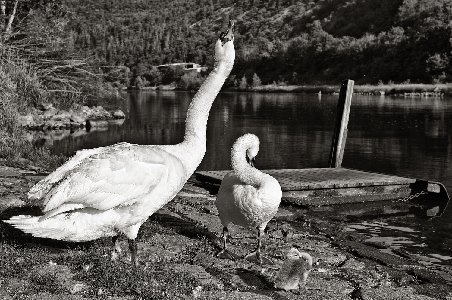 Tak to je nádhera :D - celá rodinka v zajímavé pozici, z blízka, kus mola a ostře avšak s nerušícím pozadím (vlevo převládá bílá a vpravo obraz vyvažují převládající tmavé stíny (n) (n) (n)